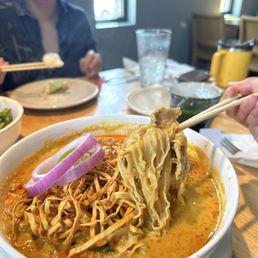 In the area and stopped in for an early dinner. I ordered the spicy basil fried rice with shrimp. The rice was really tasty and it was served in the stone pot that kept it nice and hot during the whole meal. Portions are large and price is reasonable. I brought home half for another meal. I will be back the next time I'm in town .